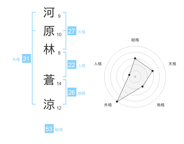 河原林 蒼涼さんの総格は53画の3点!