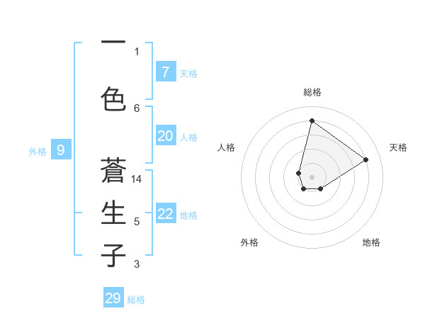 一色 蒼生子さんの総格は29画の4点!