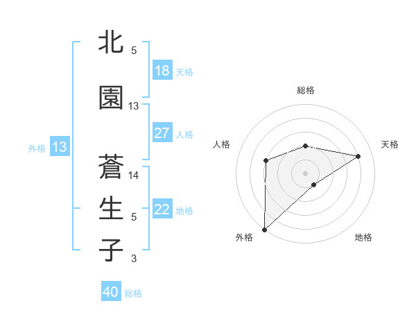 北園 蒼生子さんの外格は13画の5点!
