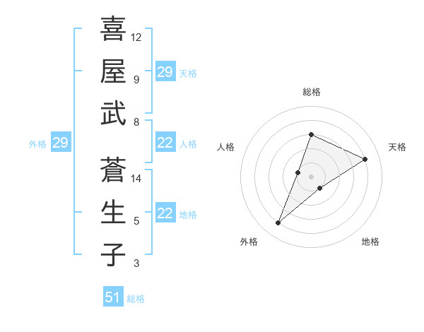 喜屋武 蒼生子さんの外格は29画の4点