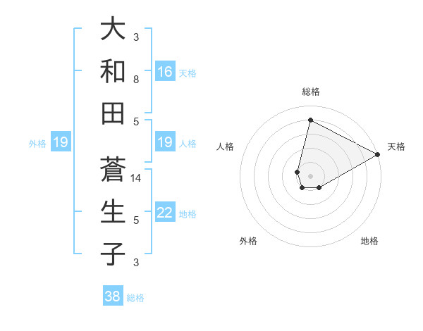 大和田 蒼生子さんの総格は38画の4点!