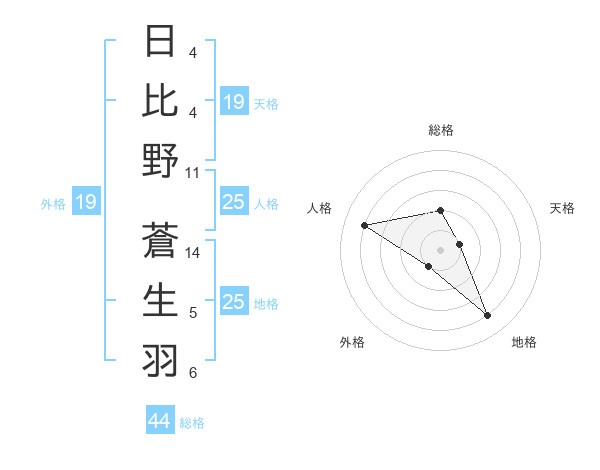 日比野 蒼生羽さんを姓名の画数から五運を鑑定