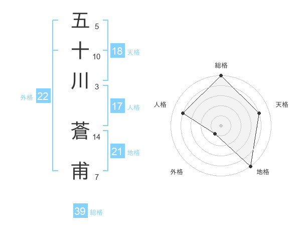 五十川 蒼甫さんを姓名の画数から五運を鑑定