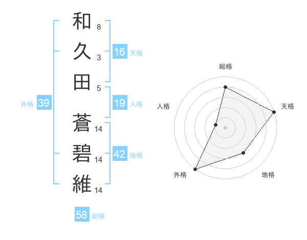 和久田 蒼碧維さんの外格は39画の5点!