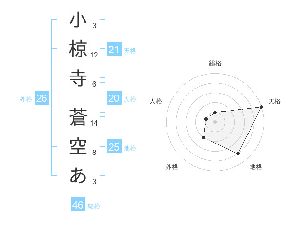 小椋寺 蒼空あさんの天格は21画の5点!