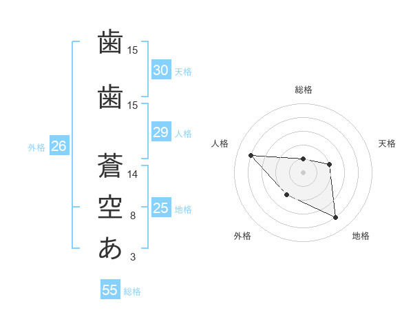 歯歯 蒼空あさんの総格は55画の1点!