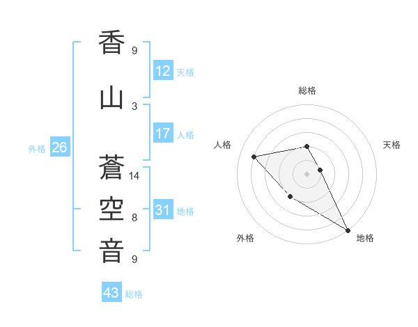 香山 蒼空音さんを姓名の画数から五運を鑑定
