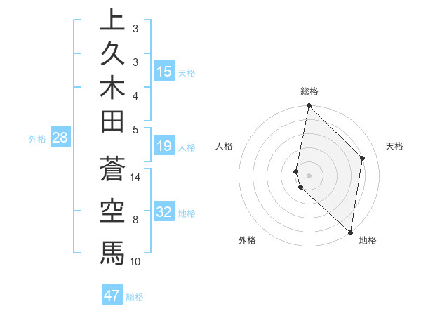 上久木田 蒼空馬さんを姓名の画数から五運を鑑定