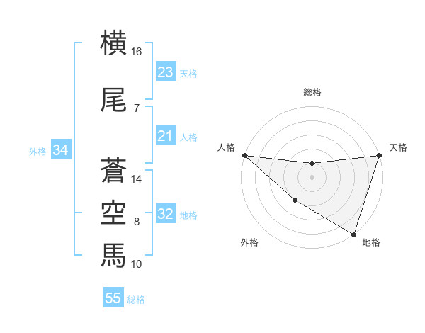 横尾 蒼空馬さんを姓名の画数から五運を鑑定