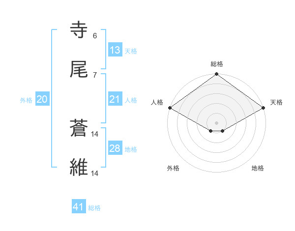 寺尾 蒼維さんの総格は41画の5点!