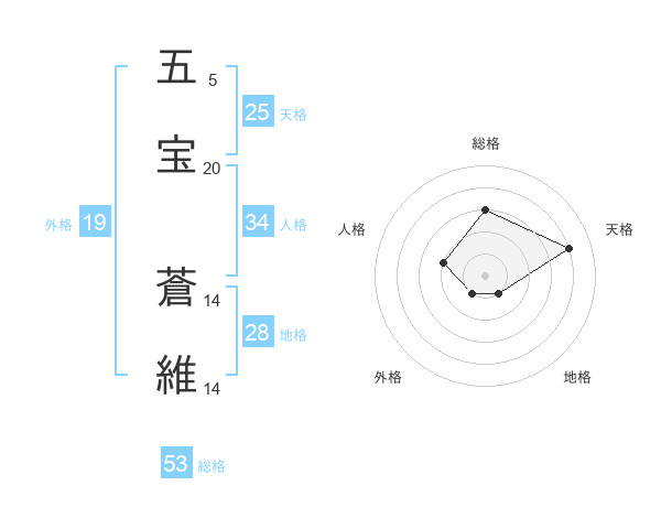 五宝 蒼維さんの総格は53画の3点!