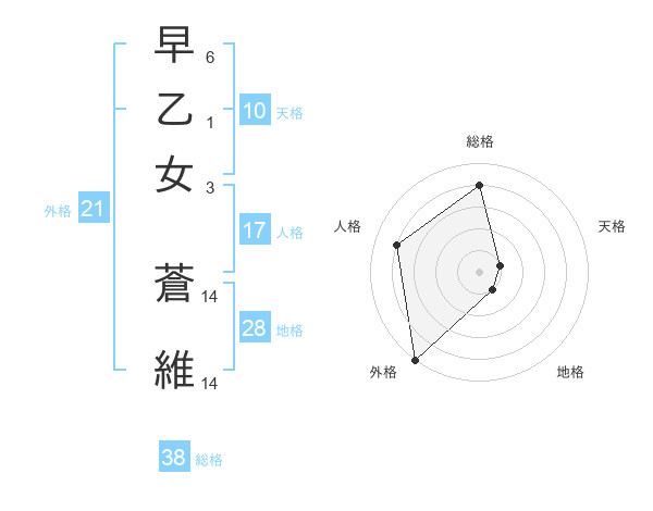 早乙女 蒼維さんを姓名の画数から五運を鑑定