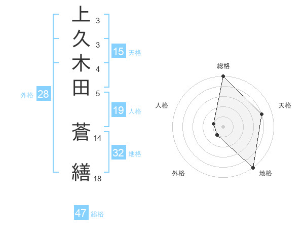 上久木田 蒼繕さんを姓名の画数から五運を鑑定