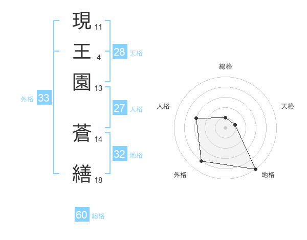 現王園 蒼繕さんの外格は33画の4点!