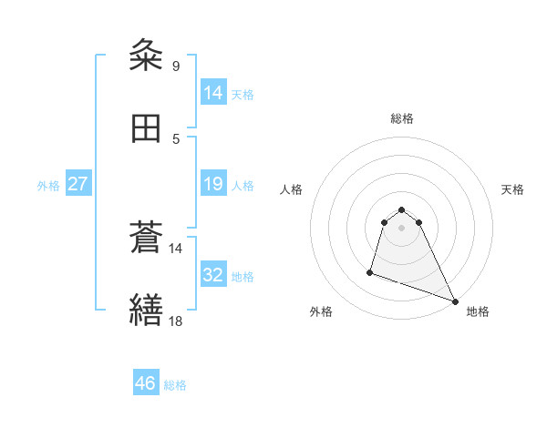 粂田 蒼繕さんを姓名の画数から五運を鑑定