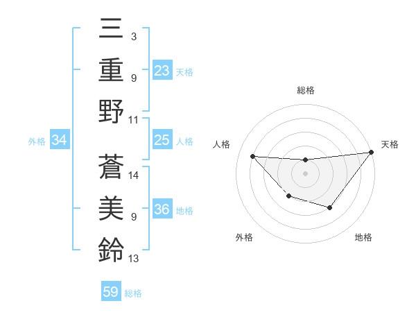 三重野 蒼美鈴さんを姓名の画数から五運を鑑定