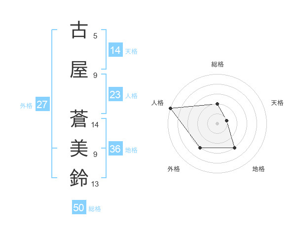 古屋 蒼美鈴さんを姓名の画数から五運を鑑定