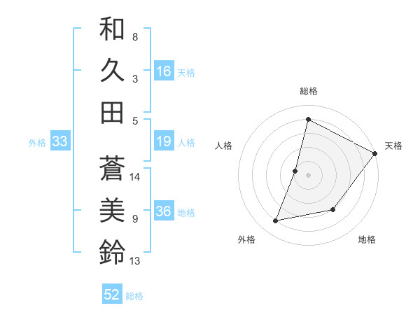 和久田 蒼美鈴さんの総格は52画の4点!
