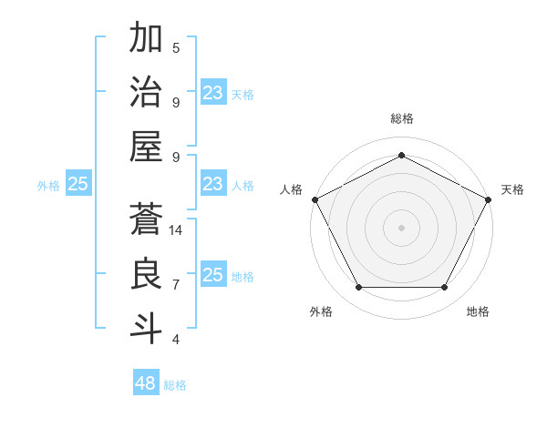 加治屋 蒼良斗さんの天格は23画の5点