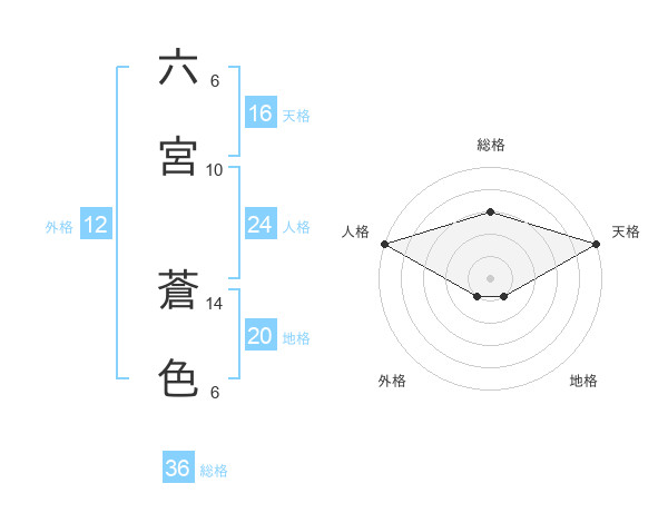 六宮 蒼色さんの天格は16画の5点!