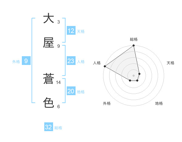 大屋 蒼色さんを姓名の画数から五運を鑑定