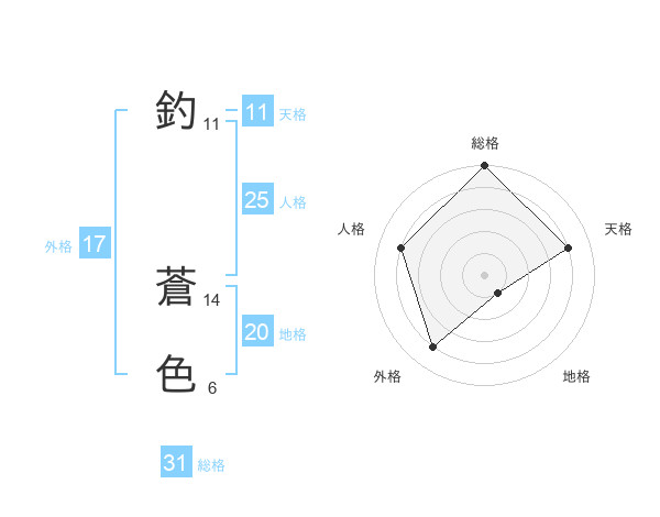 釣 蒼色さんの総格は31画の5点!