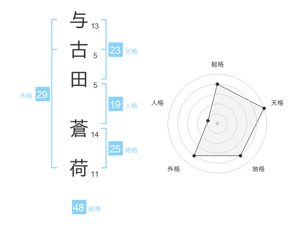 与古田 蒼荷さんを姓名の画数から五運を鑑定