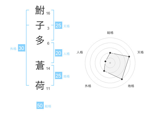 鮒子多 蒼荷さんの総格は50画の2点!