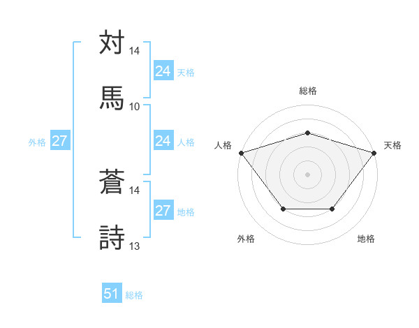対馬 蒼詩さんの総格は51画の3点!