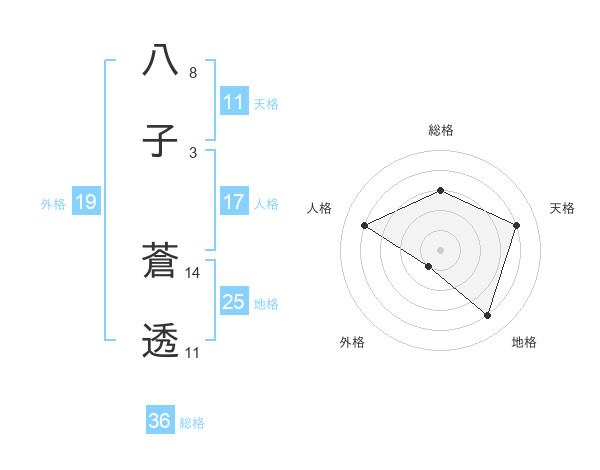 八子 蒼透さんの天格は11画の4点!