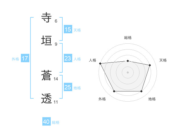 寺垣 蒼透さんを姓名の画数から五運を鑑定