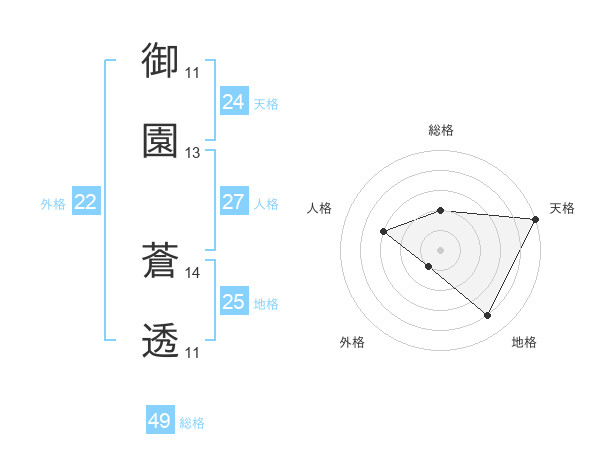 御園 蒼透さんを姓名の画数から五運を鑑定