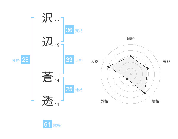 沢辺 蒼透さんを姓名の画数から五運を鑑定