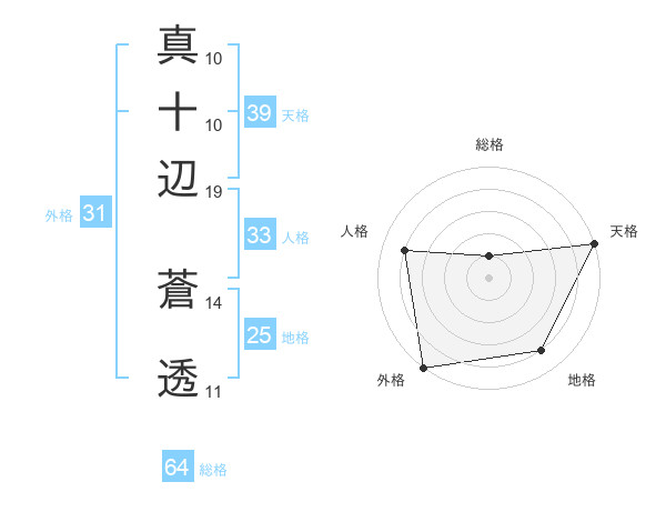 真十辺 蒼透さんの総格は64画の1点!