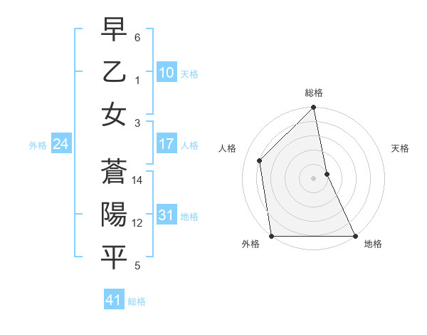 早乙女 蒼陽平さんの総格は41画の5点!