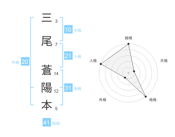 三尾 蒼陽本さんを姓名の画数から五運を鑑定