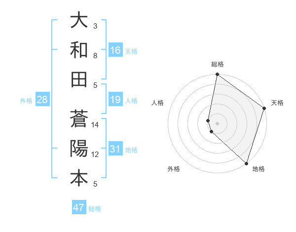 大和田 蒼陽本さんを姓名の画数から五運を鑑定