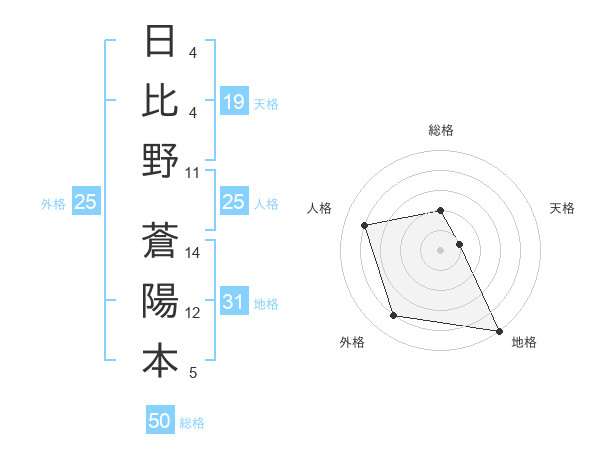 日比野 蒼陽本さんの総格は50画の2点!