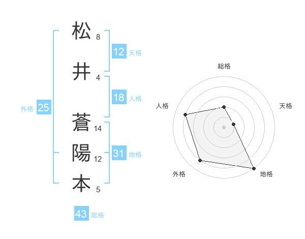 松井 蒼陽本さんを姓名の画数から五運を鑑定
