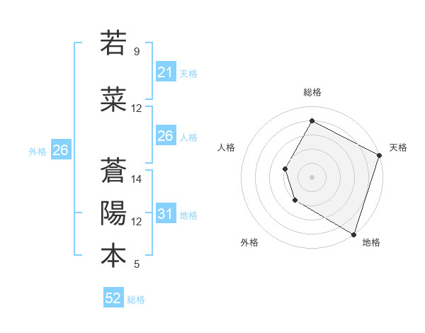 若菜 蒼陽本さんを姓名の画数から五運を鑑定