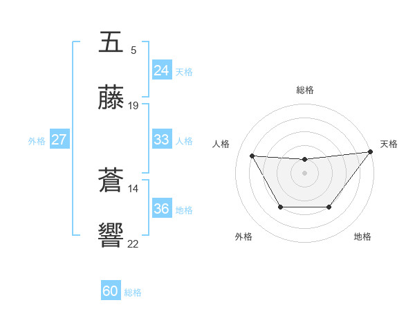 五藤 蒼響さんの総格は60画の1点!