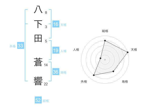 八下田 蒼響さんを姓名の画数から五運を鑑定