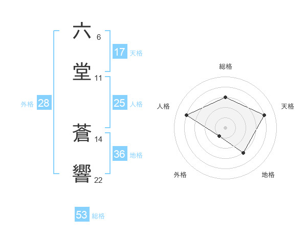 六堂 蒼響さんを姓名の画数から五運を鑑定