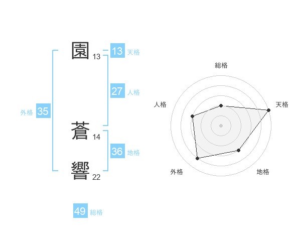 園 蒼響さんの天格は13画の5点!