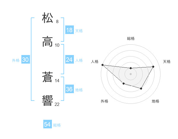 松高 蒼響さんの総格は54画の1点!