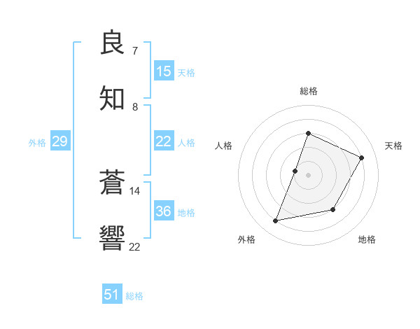 良知 蒼響さんを姓名の画数から五運を鑑定