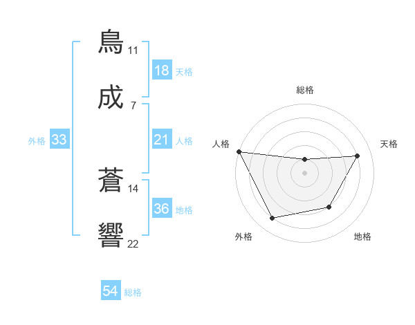 鳥成 蒼響さんの総格は54画の1点!