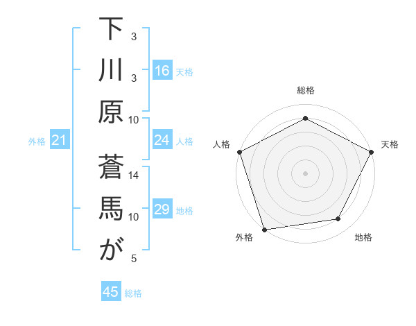 下川原 蒼馬がさんの総格は45画の4点!