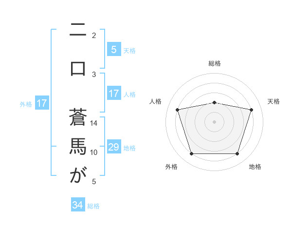二口 蒼馬がさんを姓名の画数から五運を鑑定