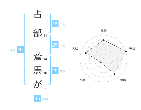 占部 蒼馬がさんを姓名の画数から五運を鑑定